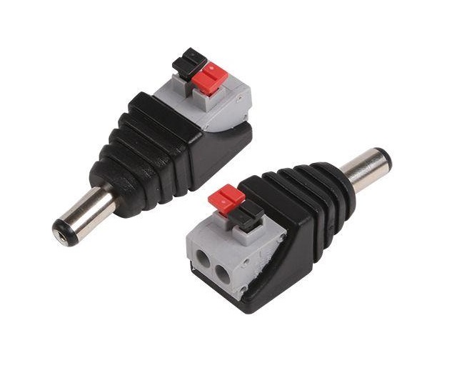 РАЗЪЁМ питания штекер 2.1х5.5 с быстрозажимной колодкой (блистер) REXANT предназначен для оперативного подключения питания различного оборудования (систем видеонаблюдения, питания зарядных или других бытовых устройств) к источнику питания постоянного тока 12/24В (DC).